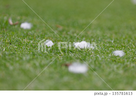 芝生に落ちたトックリキワタの綿|植物園で見つけた自然素材