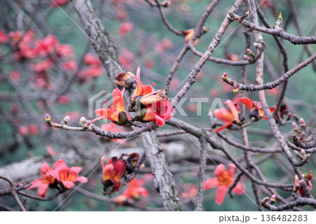 Bombax ceiba flowers, red cotton tree, Nepal.