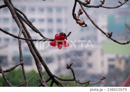 Bombax ceiba flower, vibrant red silk-cotton tree blossom. High quality photo