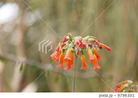 家の周りの草花 四季の色々 温室にセイロンベンケイソウのオレンジ色の花がラッパ状に咲いていまオ