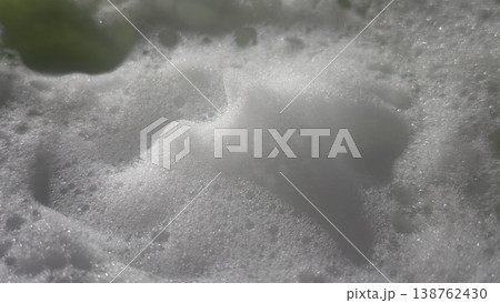 Bubbles forming in a mixture at a cleaning or washing activity in bright light