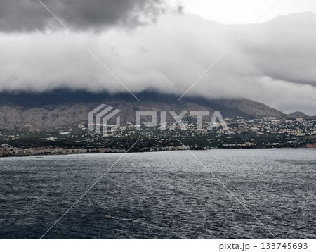 Storm Over Coast, Gloomy Clouds Dominate Seaside Skyline, Foreboding Weather Casts Shadow On Coastal City