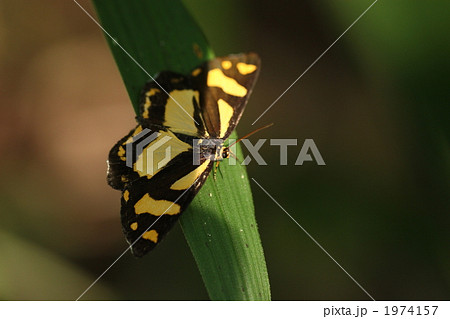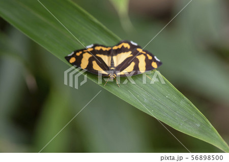 昼行性蛾 葉に止まるアゲハモドキガ科キンモンガ