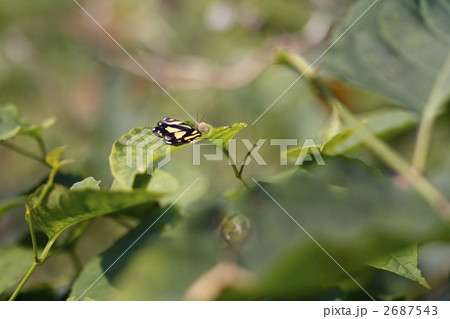 青葉の上に休むキンモンガ