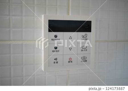給湯器のリモコン。新しく付け替えたばかりの新品モニター。電源が入っていない状態。