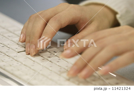 キーボードを叩く女性の手
