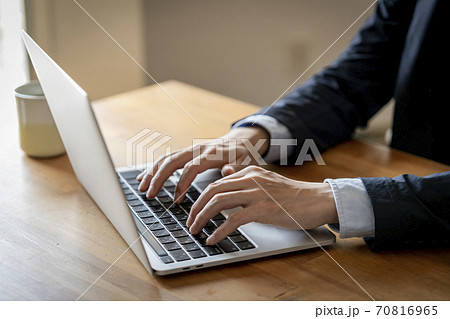 ノートパソコンを操作する男性の手元