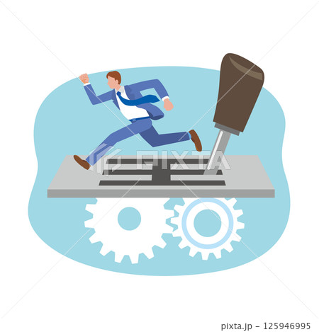ギアを上げて進むビジネスマン