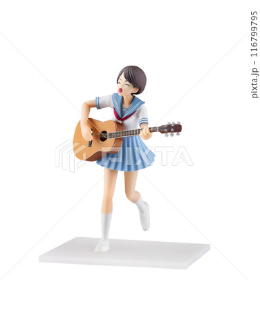 エレキギターを弾く女子高校生 高校生バンド イメージ