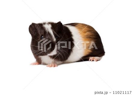 Guinea pig rosette on a white background. Fluffy rodent guinea pig on colored background