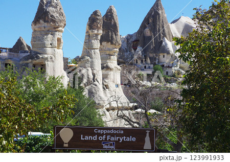 The Valley of Love in Cappadocia and cave settlements Dwellings in the rock of Turkey.