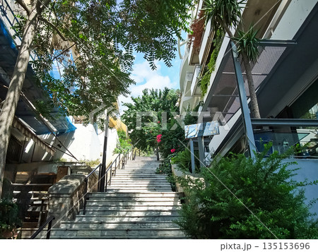 ギリシャ アテネの街並み 階段を登る