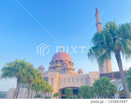 Masjid Putra or Putra Mosque, a famous rosy pink granite primary mosque in Putrajaya, blending Middle Eastern and Malay styles