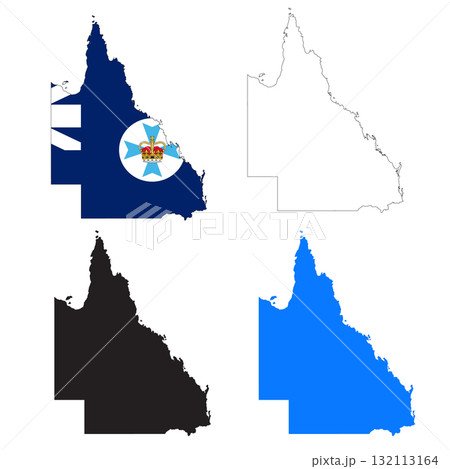 Queensland Map icon. Queensland Map Clipart. Queensland Flag Map sign. Queensland Australia Outline. flat style.