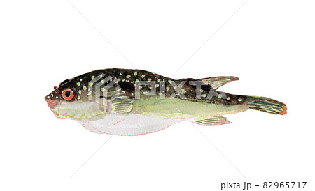 Takifugu alboplumbeus クサフグの水彩イラスト