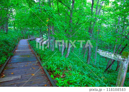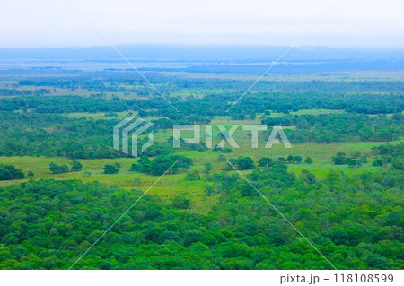 夏の北海道、道東の釧路で眺める雄大な釧路湿原、大いなる大地、湿地帯、釧路市湿原展望台、湿原の森を歩く