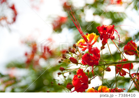 Red Peacock flower tree, on blur background.