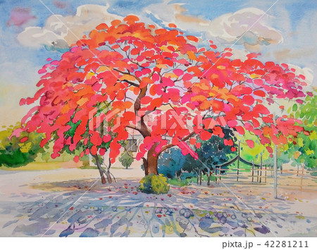 Landscape colorful of peacock flower tree
