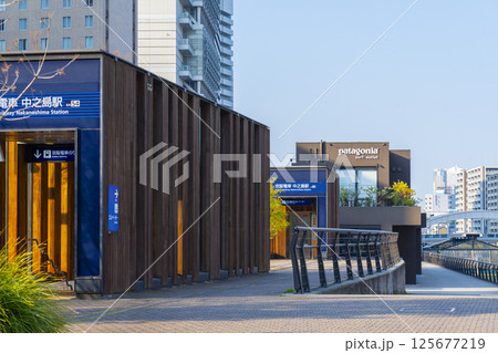朝の中之島の風景 中之島駅と中之島バンクス