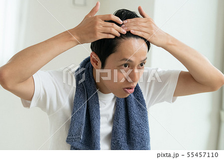 髪型を整える若い日本人男性 ヘアケア ヘアセット
