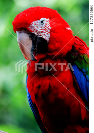 Close up head the red macaw parrot bird in garden
