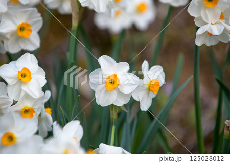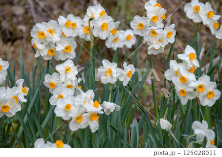 春の花壇に美しく咲くスイセン(クチベニズイセン 口紅水仙)