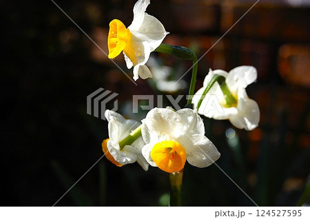 水仙 白地にオレンジ色の花