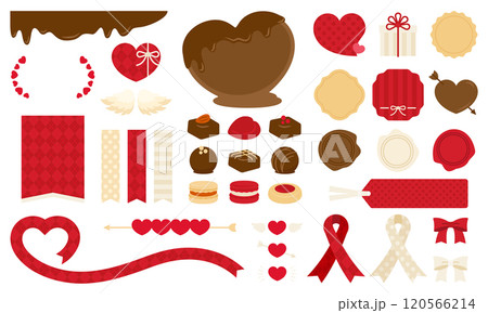 バレンタインのフレーム&リボン飾りとチョコ菓子セット_文字なし