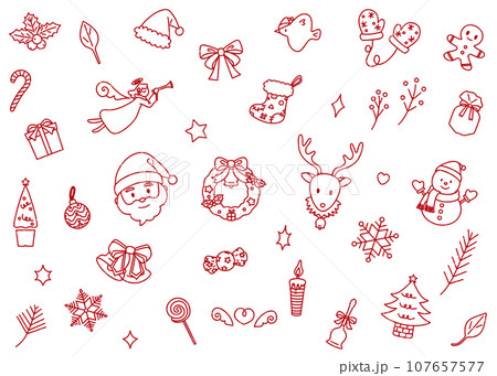 手書きのクリスマス装飾素材、ラインアート、ベクター