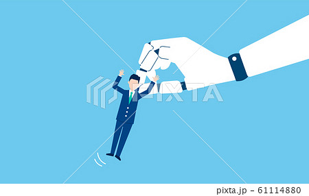 つまみ出される社員、RPAと解雇のイメージ、ベクターイラストレーション