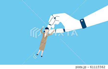つまみ出されるベテラン社員、RPAと解雇のイメージ、ベクターイラストレーション