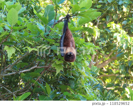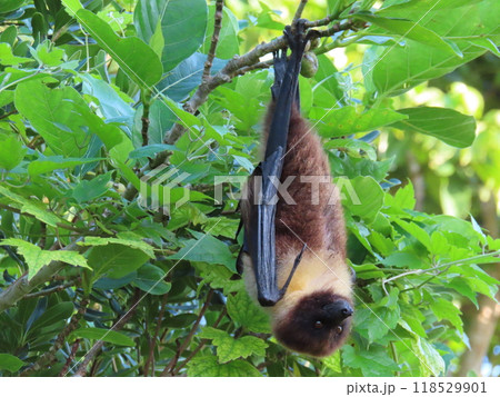 生き物 哺乳類 ヤエヤマオオコウモリ、荒天の後、お腹を空かせて昼間から餌の品定め