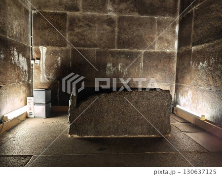 エジプトのギザ砂漠のクフ王のピラミッドの内部、王の間の花崗岩で作られた石棺です。