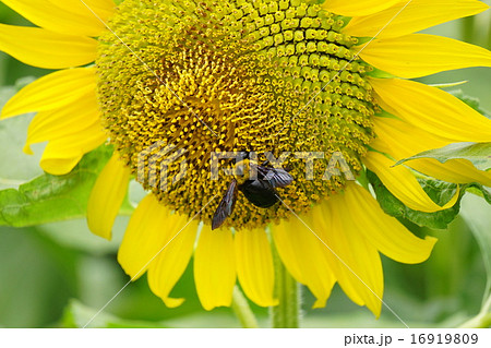 ヒマワリとクマバチ