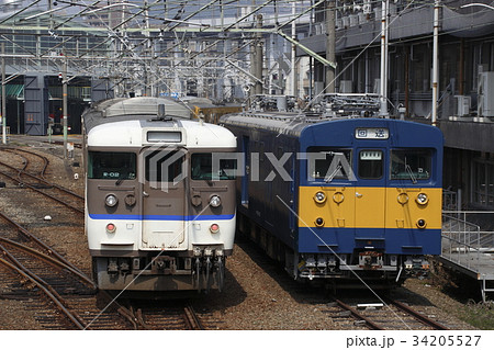 なかなか見ることができない国鉄時代に製造されたクモヤ145系がクモハ115系と連結している風景