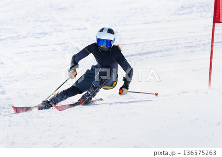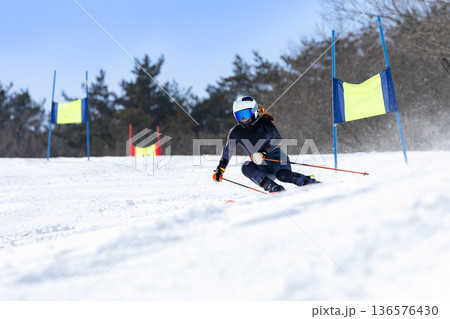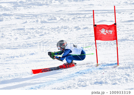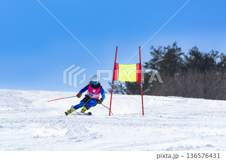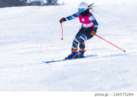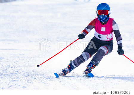 スキー競技大会でスキー疾走滑走する競技選手