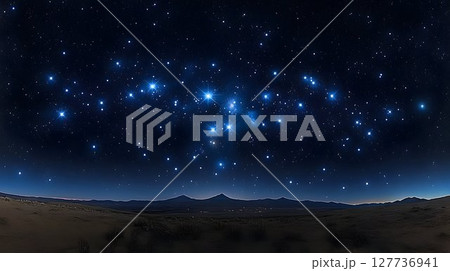 Pleiades Star Cluster Shines Above a Desert Landscape Under a Da