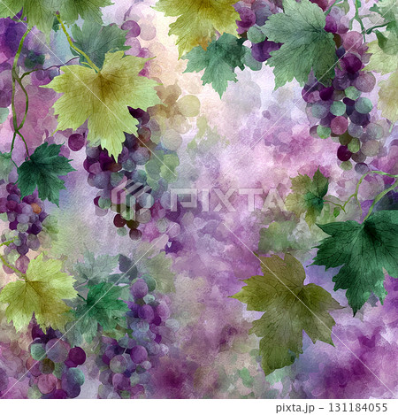 ぶどうの水彩背景イラスト 秋の果物と葡萄柄の抽象デザインテクスチャ