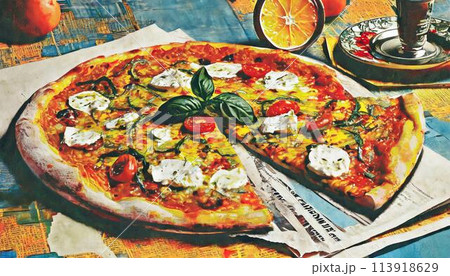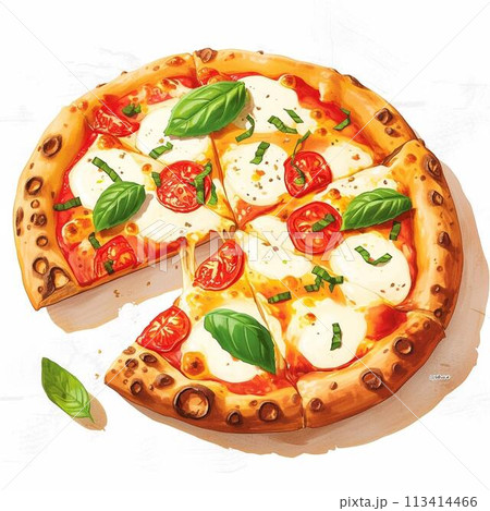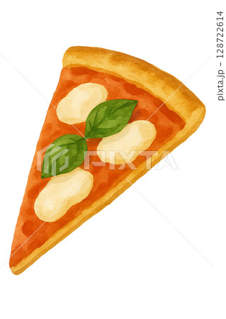 水彩風のピザスライスのイラスト素材(マルゲリータ)