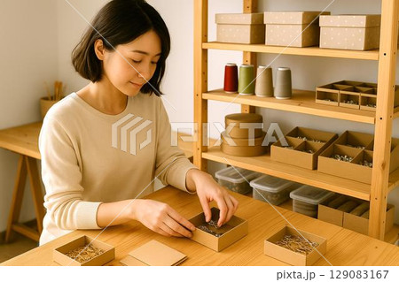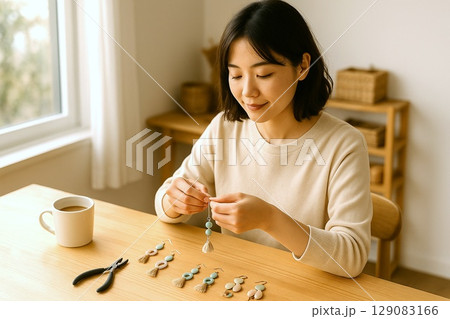 ハンドメイド作家の制作風景と商品撮影 アクセサリー制作・販売準備のイメージ素材