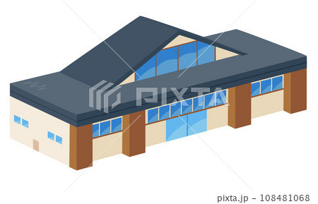 ゴルフ場にあるクラブハウス。建物のイラスト。
