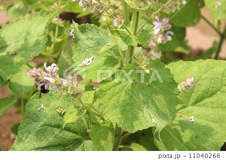シソ科の宿根草「クラリーセージ」で吸蜜する「キムネクマバチ」