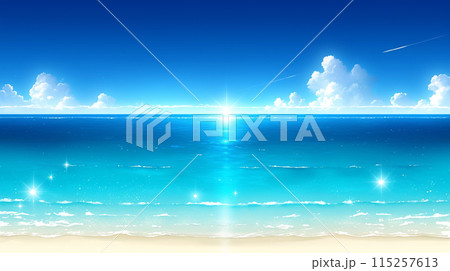 輝いている夏の海と空