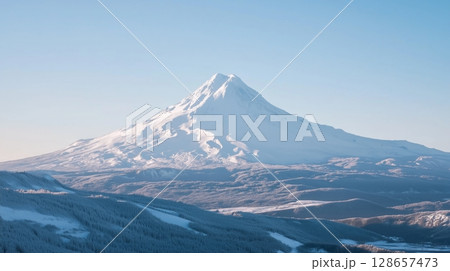 Majestic snow covered mountain under clear blue sky