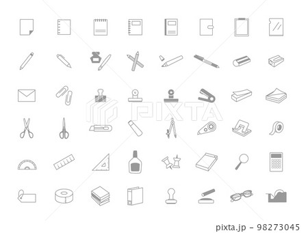 アイコン素材 文具 文房具 ステーショナリーのイラストセット グレー モノクロ