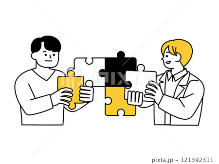 パズルのピースを組み立てているビジネスマンのイラスト