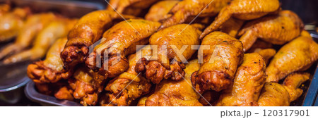 Stuffed wrapped, street food from Wangfujing street at Beijing, China BANNER, LONG FORMAT