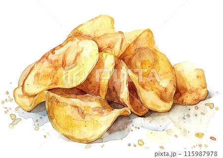 ポテトチップスの水彩画風イラスト「AI生成画像」