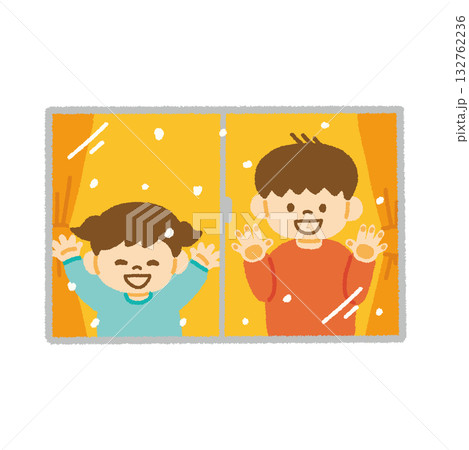 子供 雪を見る 窓 冬 雪景色 冬休み イラスト 手描き