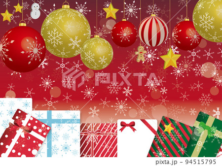 クリスマスプレゼントとオーナメントの背景白_縦長_文字あり_ベクターイラスト